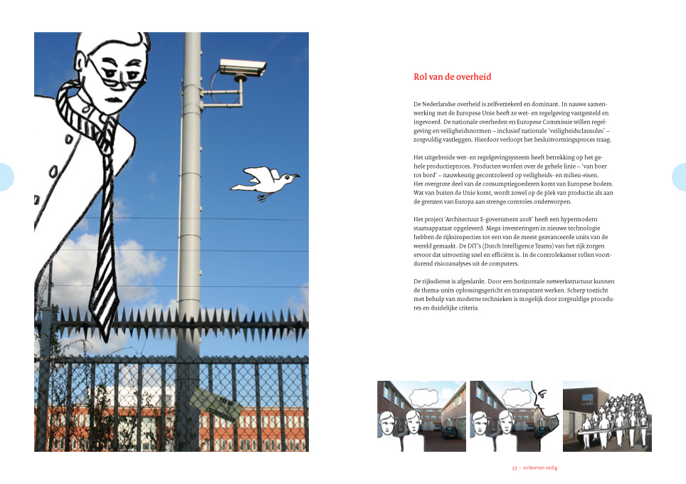Example spreads from the book designed by Rieme Gleijm. Illustrations for VWA, ‘Precaution for the safety of food and products. A glimpse into the future, 2008-2010 |